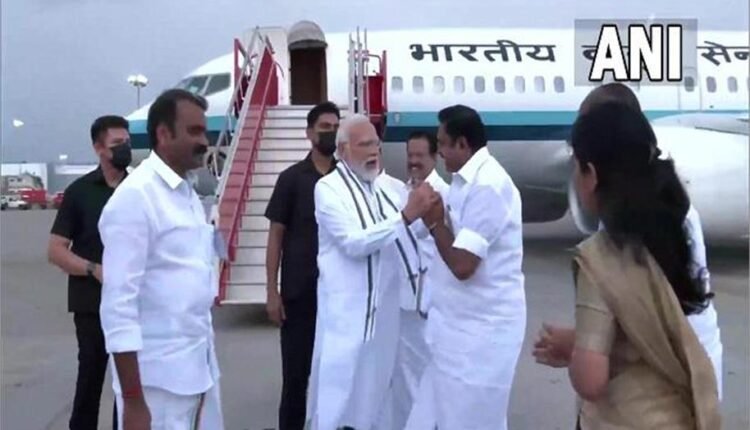 प्रधानमंत्री नरेंद्र मोदी चेन्नई पहुंच गए हैं। चेन्नई पहुंचने पर तमिलनाडु के राज्यपाल आर एन रवि ने पीएम मोदी की अगवानी की। इस दौरान डीएमके नेता और तमिलनाडु के मंत्री दुरईमुरुगन और डा के.पोनमुडी भी मौजूद थे। अपने दौरे के दौरान मोदी यहां पांच परियोजनाओं को देश को समर्पित करेंगे तथा 31 हजार चार सौ करोड़ रूपये की लागत वाली कुल छह नए परियोजनाओं की आधारशिला भी रखेंगे। इसके अलावा पीएम मोदी पांच रेलवे स्टेशनों के पुनर्विकास की आधारशिला रखेंगे। पांच रेलवे स्टेशन जिनका पुनर्विकास किया जाना है उनमें चेन्नई एग्मोर, रामेश्वरम, मदुरै, काटपाडी और कन्याकुमारी शामिल हैं।